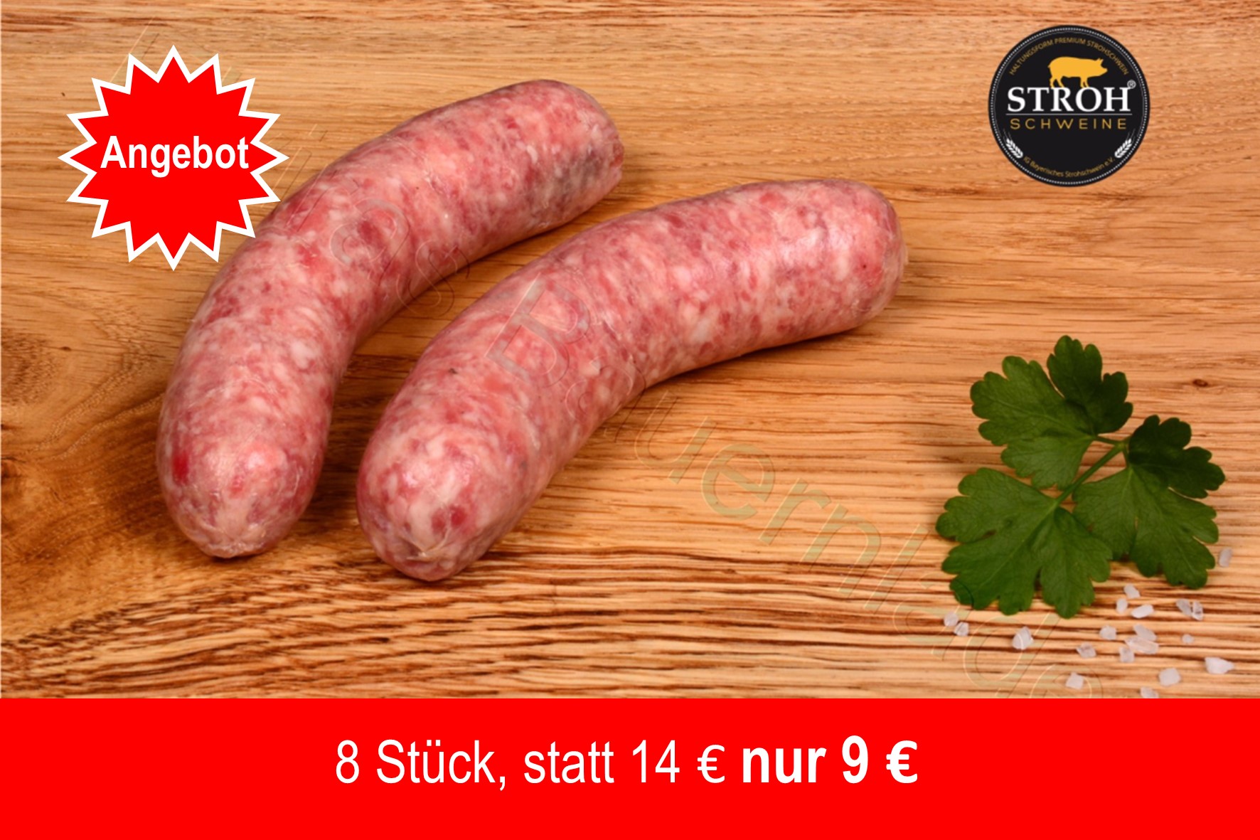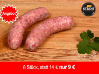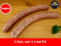 Grillbratwurst Strohschwein - 8 Stück Angebot 9,00 € / St. |