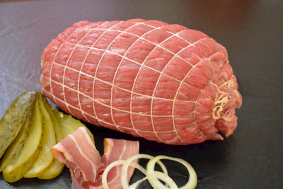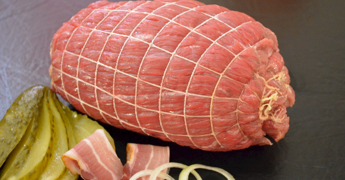 Gefüllt mit Essiggurken, frischen Zwiebeln, Senf und Dörrfleisch.