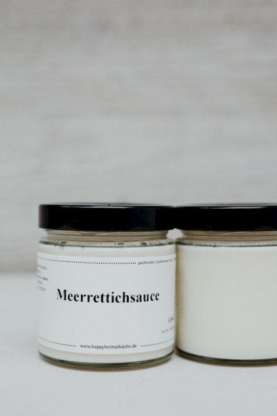 Zutaten: Kitzinger Meerrettich, Rinderbrühe, Sahne, Kerala-Pfeffer, Meersalz, Glas 350ml
